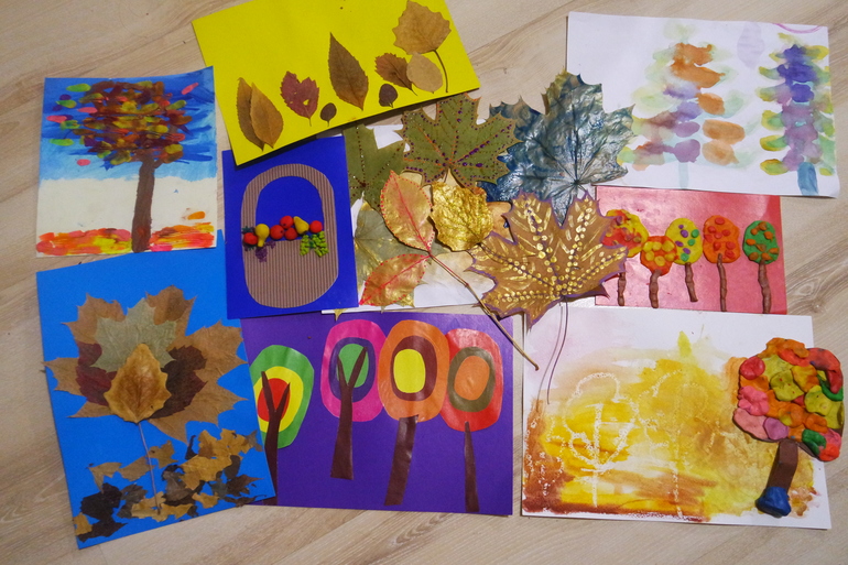 Рисовали на листьях. Лиза большую часть красивых листиков отнесла в детский сад! Это был ее первый порыв показать своё творчество.