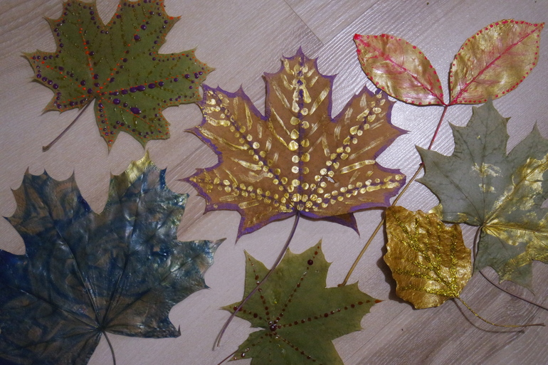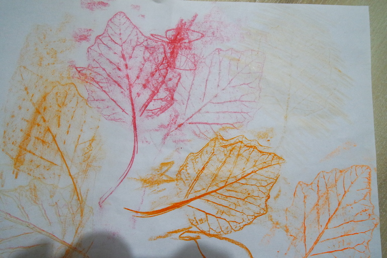 Красивые листья и восковые мелки в Лизеном исполнении.