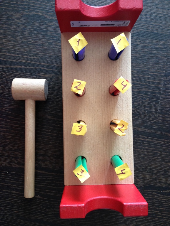 математическая стучалочка- мама называет цифру, а ребенок находит и забивает молоточком