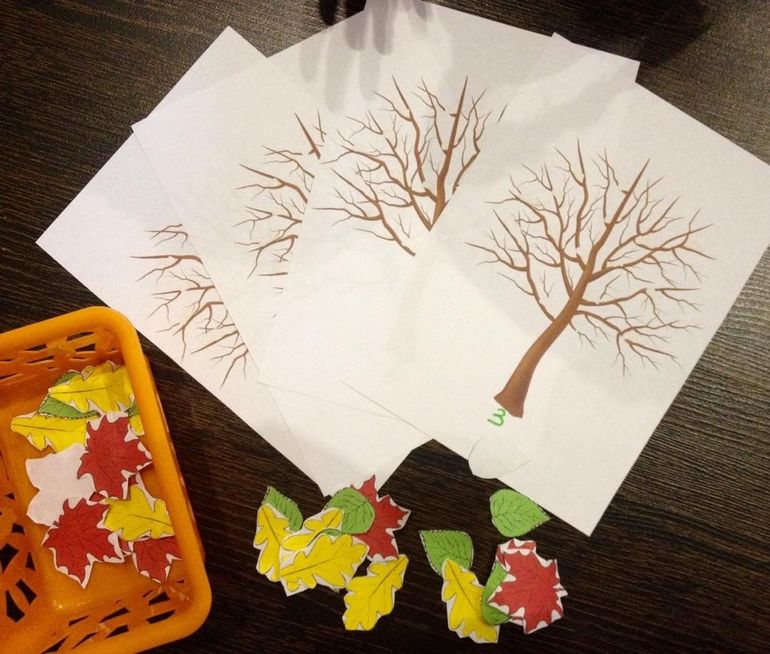 клеим листики на дерево.. какая цифра- столько и листочков)