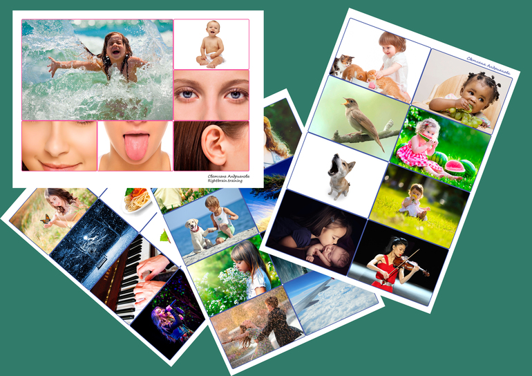 2. Рассмотрите отдельные картинки с ситуациями (разрежьте эти листы на карточки) и поговорите о том, какие органы чувств задействуются там. Обратите внимание ребенка на то, что во многих ситуациях включаются сразу несколько, а частенько и все 5 органов чувств.