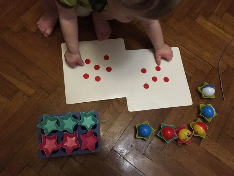 Развиваем логику и математические способностиА я разобрала игрушки сына) Наконец я выкинула сломанные, не нужные. И убрала погремушки. Закупилась новыми книгами, фигурками животных в фикспрайсе. Но о них позже) вообще, наблюдая за сыном, понимаю, что игрушки - это не самое главное) Есть, конечно идеальные, но стоят они целое состояние и не факт, что ребёнок будет им увлечён долго. Мирослав недавно разбирал полку на кухне, нашёл формы для льда и выпечки и они стали нашими игрушками на 3 дня. Складывал в них шарики, нажимал пальчиком, рассматривали цвета и считали их. Я подобрала карточки из "считаем с пелёнок" и звёздочки. Положила 3 звёздочки, и карточку с количеством 3. Потом накрыла пледом, под ним поменяла количество звёздочек, подняла плед и удивила сына) он же не видел, что я добавляла звёздочки. Что бы эффект был ярче, я прибавляла сразу несколько форм. Например: из 3 в 6. Вот такая интересная математика из подручных средств.