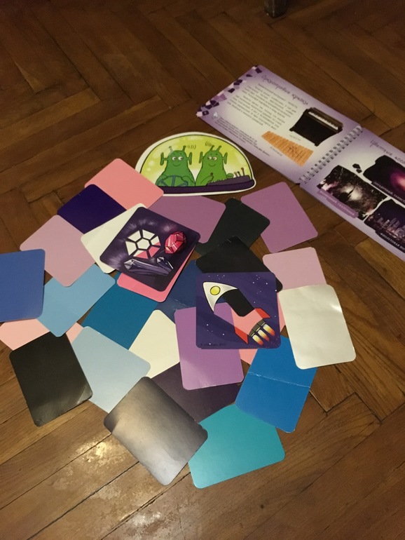 Игры для малышей от 0 до 3 летСыночек выздоровел до конца. Только дерматит обострился сильно. Внезапно, он решил перейти на один сон, который длится 1,5 часа. К слову, до болезни у нас было 2 сна, утром 1 час и в обед 3 часа. Выспался, блин. Он то перестроился, а я ещё нет😕. Бошка гудит, сил нет, вечером сопли и температура 38. Почему бы и нет, давно не болела. Но не все так печально. Мирослав же не понимает, что мама себя плохо чувствует, поэтому требует развлечений, как прежде. А я что... развлекаю и играя вместе с ним, забываю о болезни) сегодня весь интернет пестрит "День космонавтики". Для меня эта тема близка) с детства увлекалась космосом, и жила раньше на ВДНХ, а там музей космонавтики. Когда училась в школе, нас туда каждый год водили. С Мирославом устроили космическое небо с помощью цветных карточек, вокруг которых кружили инопланетяне. Куча карточек в одном месте-это же круто! Их можно раскидывать, подбрасывать. Потом я взяла трафарет ракету и с помощью карточек меняла цвет ракеты. Получилось просто и интересно. Ракета высоко летала и в процессе полёта меняла цвета. Мы пересмотрели всю эту кучу, а это 26 разных оттенков и сын не отвлёкся ни на секунду. Потом достали карточки Мир на ладошке "Тайны Космоса" (это мой любимый набор) Мирослав вытаскивал из конвертика по одной, а я озвучивала и объясняла. Хотела ещё нарисовать звездное небо. Но мое состояние "сказало" иди спать. Порисуем завтра.