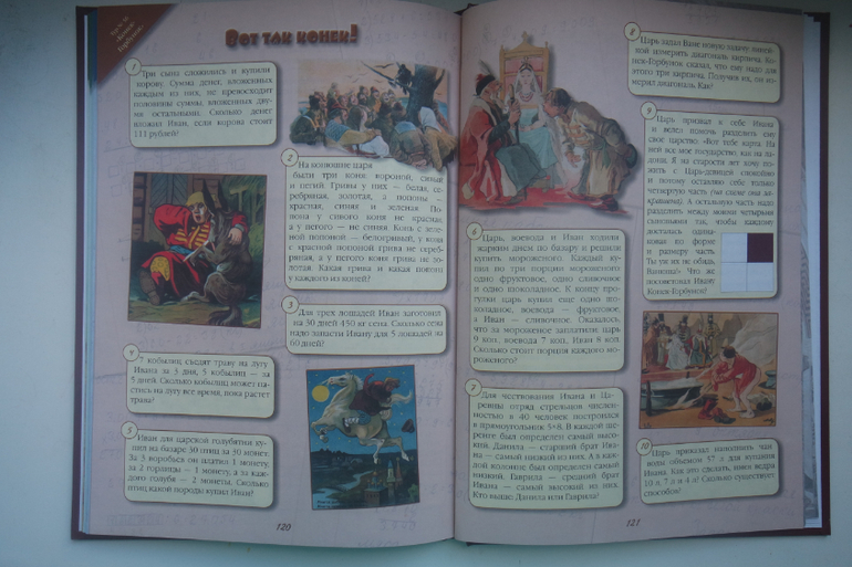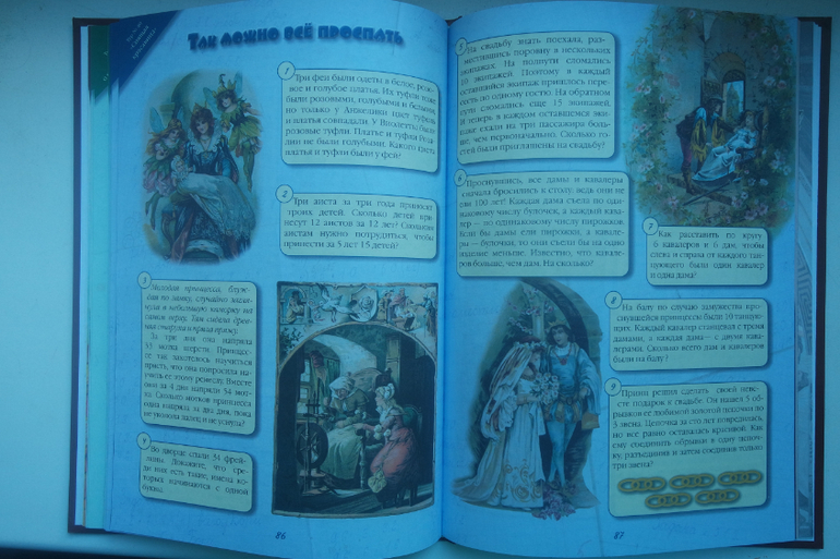 Составители собрали лучшие олимпиадные задания, переложили их на сказочные сюжеты и проиллюстрировали задачник рисунками из дореволюционных книг.