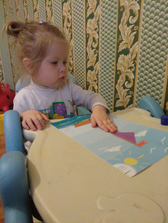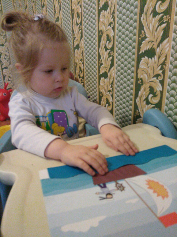 Идею, отправиться в путешествие по морям-океанам, Слава восприняла с энтузиазмом) И когда я сказала, что сегодня мы будем делать корабль, моя девочка очень обрадовалась! Начали мы с выбора нашего корабля, для этого посмотрели, какие они бывают (спасибо карточкам ). Решили делать парусник. К счастью, я нашла в подходящие арт-листы, и Слава приступила к работе над аппликациями.