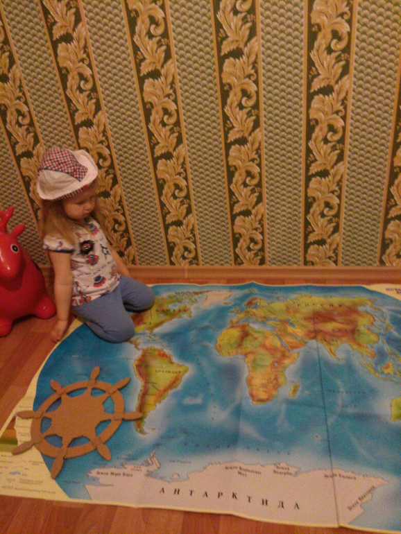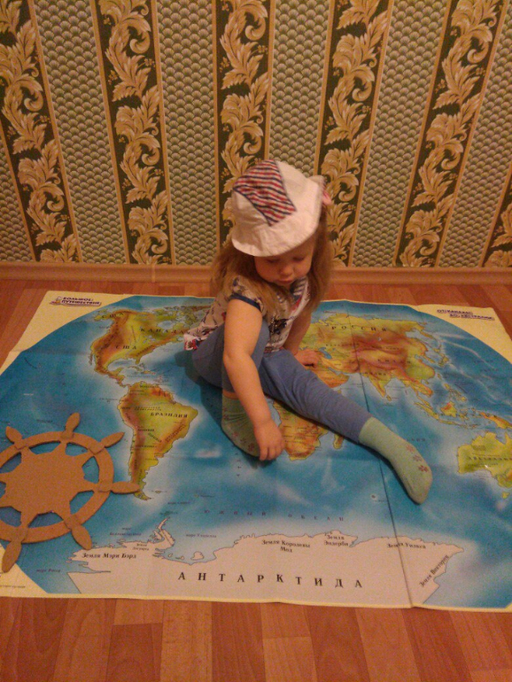 Достала карту из от Умницы. Посмотрели, какие океаны есть на Земле, где они расположены. Как всегда поползали, повалялись на карте - особое удовольствие у ребенка)))