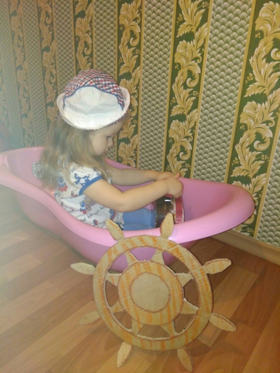Мир Профессий: Экскурсии, Энциклопедии, Тематические занятия, Игры, Художественные произведенияИтак, второй день посвящен теме«Капитан». Сюжетно-ролевая игра пришлась нам по душе! Сначала обсудили, кто же такой капитан и какова его деятельность. Стать капитаном Слава согласилась с удовольствием. Первым делом отправились искать подходящий наряд (девочки есть девочки). Потом нашли лодку, разобрались со штурвалом (спасибо папе - смастерил нам такой чудный маленький штурвал), даже пригласили пассажиров.