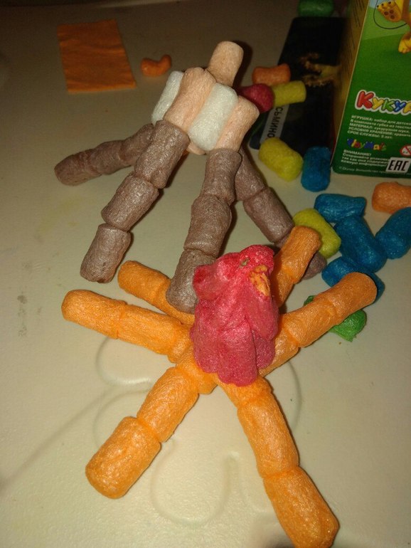 Ещё попробовали сделать осьминога из кукуруктора (давно подарили нам этот конструктор). Не особо симпатичные вышли животины, но из этого конструктора вообще сложно что-либо узнаваемое сделать..))