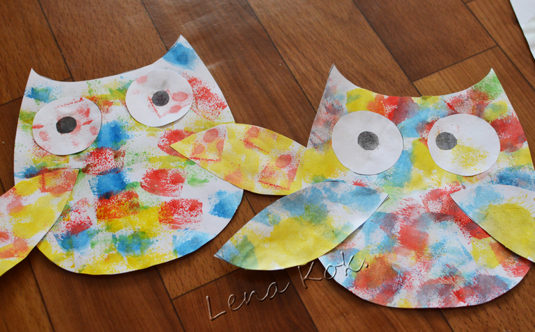 p.s. губку лучше макать в жидкие(густые) краски, чтобы не пришлось смачивать ее в воде, так отпечаток будет более четким