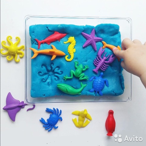 7. Можно закапывать в песке/крупе фигурки динозавров и морских животных, а потом искать их