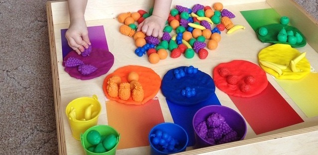 2. Сортировка по цвету - ребенок может раскладывать фигурки по цвету в разноцветные стаканчики или тарелочки