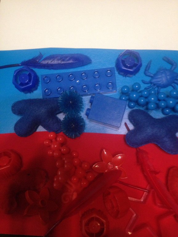 Поиграли в сортировку по цвету. Цвета взяли российского флага.