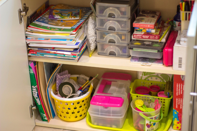 Кстати, все материалы да и сами творческие процессы плавно перекочевали на кухню. И заняли шкаф под окном. Правда сейчас я доделываю зону творчества еще и для Таси в детской, и часть коробочек и баночек отсюда переехала.