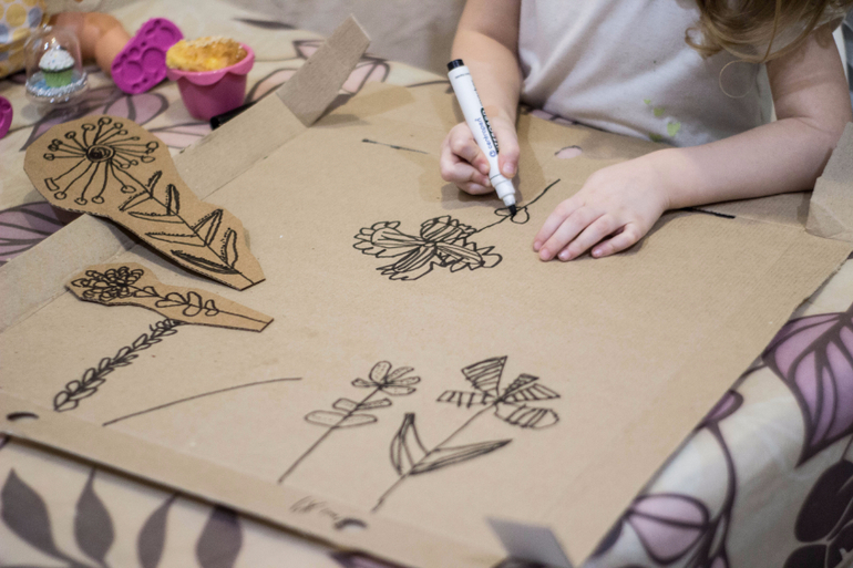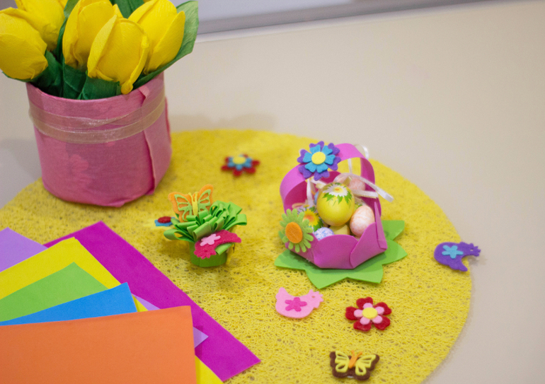 С алиэкспресс заказывала пенку для творчества, делали корзиночку из нее и полянку. Варя даже горячий пистолет освоила, сама клеила.