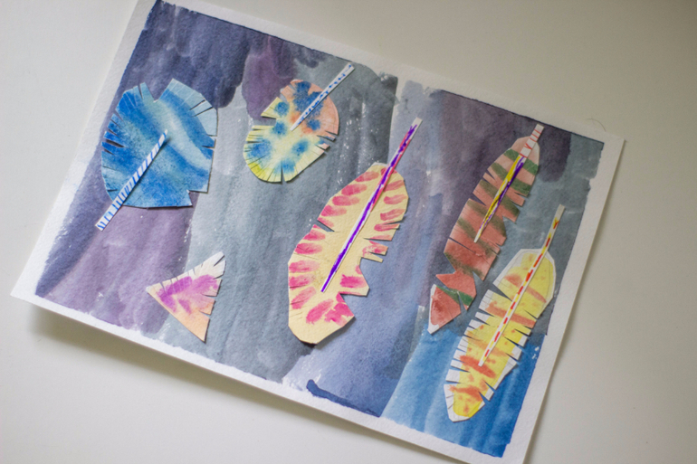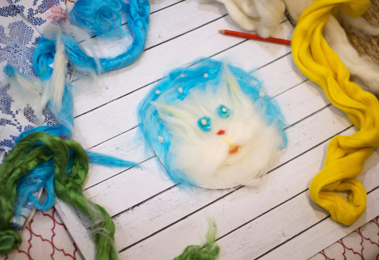 Еще пробовали интересную технику рисование шерстью для валяния. Решили, что сложновато, попробуем через годик )