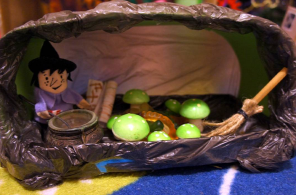 Ведьма не спроста так легко покинула городок. Очевидно уже тогда она задумала своё злодеяние! Ночью, когда все жители мирно спали в своих кроватках, ведьма облюбовала тёмную пещеру и начала варить в своём котле страшное зелье, про которое прочитала в своих древних свитках. Закончив, она полетела в Рождественский городок, окропила всё кругом своим зельем и тут же сквозь снег полезли поганки, дурман-трава и огромные пауки, которые опутали весь городок! Утром эльфы увидели весь этот ужас и тут же написали письмо. Прочитав, Кики сразу отправилась на поиски логова ведьмы в поисках заклинания отгоняющего всё отвратительное и злое. Подняла спящую на червяках ведьму, убрала пинцетом самих червей и наконец нашла. Надо было три раза сказать карабос-карабос-карабос и злые чары спали с городка! Ура!