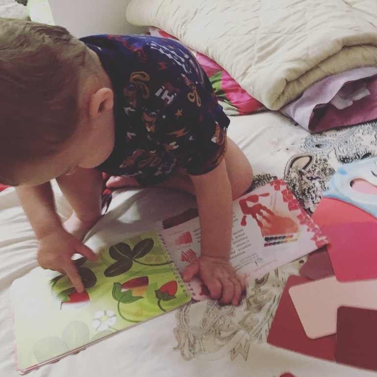 Творческое развитиеХорошо пошёл «синий день». Сегодня мы играли с красным цветом и его оттенками. Начали с наших любимых баночек. На крышечку мажешь гуашь, в банку наливаешь воды, закрываешь, трясёшь и цвет воды меняется. Я часто про них пишу, но в жизни я их использую ещё чаще. Хвала тому, кто это придумал) Мирослав очень любит играть с водой, по этому теперь с баночками мы играем в ванной, потому что их интересно открывать, выливать окрашенную воду и смотреть, какого она цвета. Дальше я запланировала рисование, все приготовила. Потом поняла, что немного сглупила ... ведь после рисования снова придётся идти в ванну... Как же удобно рисовать в ванной)))) Никакой темы не было, Мирослав просто рисовал красным цветом) получилось красиво) Выйдя из ванной мы посмотрели все оттенки красного цвета. Для этого нам нужна была Капелька из Творчества с пелёнок, которую я опять куда-то засунула. Я предложила Мирославу позвать ее, ведь тогда она точно придёт. Бегал по комнате кричал «КА», заглядывал во все ящики, коробки) Нашли) Почитали красный альбом, там тоже есть трафареты, на этот раз мы «разукрашивали» с помощью карточек ягодки и бабочек. Ну и что бы творческое развитие было полноценным, все это мы делали под Моцарта) Месяца в четыре, сын хорошо под него засыпал) А теперь танцует) да, так что Мигель позавидует) После, Мирослав забрался на кровать, начал что-то рассказывать, размахивать руками... с такими эмоциями, мимикой. Да ещё и под «реквием по мечте». Выглядело очень драматично. Я смотрела, как заворожённая. Он как-будто на сцене, а это актёрский монолог. А вдруг, Мирослав в будущем будет актером.... я запомню это) потом ему расскажу.