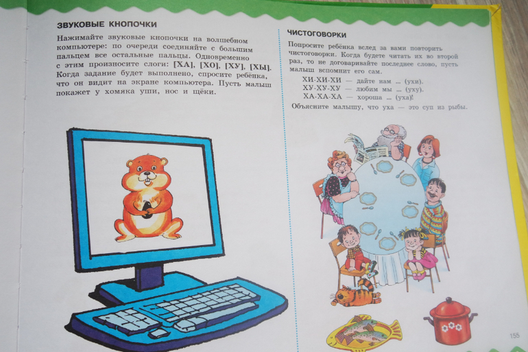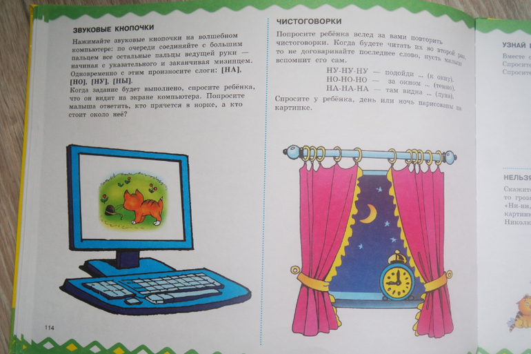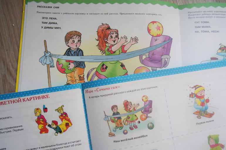 Советую? У нас эта книга не пошла... У первого ребенка дизартрия и она до 3,3 лет ничего не говорила. Словарный запас-- многочисленные виммельбухи и книжки, звукоподражание- с игрушками, заданий на развитие моторики--здесь мало. Да и сама книга не из тех, которые хочется просто полистать...Вторая дочка--шилопоп, за столом стала заниматься только в 3 года, а данную книгу на ходу не почитаешь...