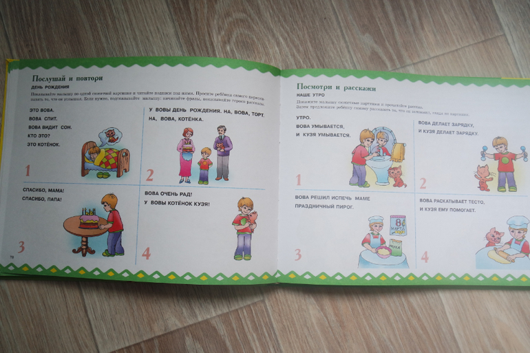 У меня не получалось стимулировать ребенка произносить фразу, только название объекта.