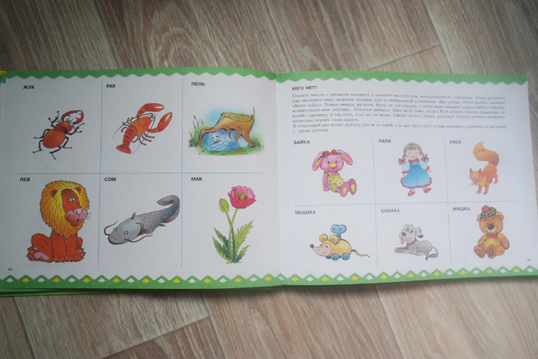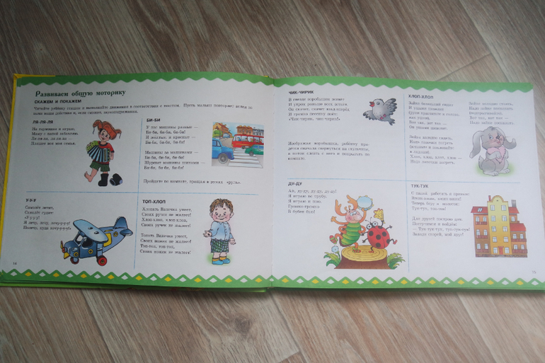 Работа со словарным запасом малыша (предметы и действия).Игры для развитие общей моторики. Очень важный и любимый раздел, который в других пособиях редко встречается.