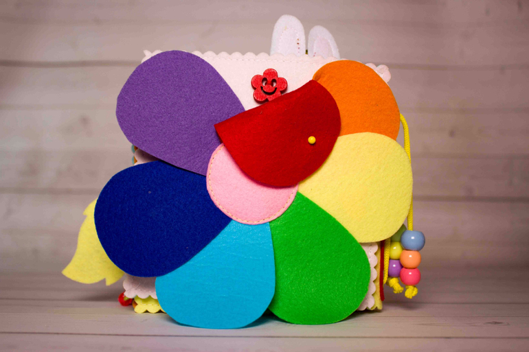 Стр 3. Клумба тульпанчиков. Все цветы съемные на липучках. Солнышко на пуговке.