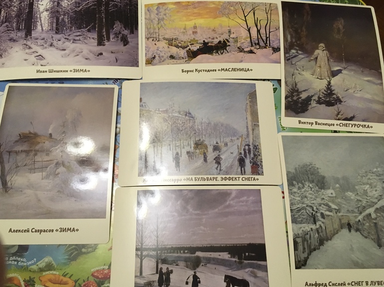 Творческое развитиеЯ так хотела написать пост о том, что праздники развивашкам не помеха и выложить его числа 2-3) но нет) гости, гулянки, работа (без неё никак) Сегодня все-таки позанимались немного. Тема зимы без снега набирает обороты) Для меня, такая «европейская» зима, самое то. Не люблю холод, лёд, снег. Но Мирослав, который раз берет на прогулку лопату и копает асфальт( решила напомнить ему, как снег выглядит) Посмотрели картины великих Художников на тему зимы. Эти карточки из набора «Шедевры для самых маленьких» один из наших новогодних подарочков. Потом мы закончили начатую ёлочку, украсили пластилиновыми шариками. Разукрасили мамонта, что бы ему в снегах не было холодно. И в конце, мои любимые, простые аппликации. Взяла дерево из Творчества с пелёнок, оно служило нам верой и правдой очень долго, пора на покой, вернее на наш шедевр) Мелко порезала дождик для ёлки, пенопласт, дерево намазала клеем. И этой красотой мы украсили деревце) Такое красивое и снежное получилось, прям как у Шишкина) Я так Мирославу и сказала «Смотри, твоя картина, такая же красивая, как у великого художника». Мне кажется, детям важно осознавать свою крутость) хотя, в первую очередь, это нужно осознавать родителям) наши дети нереально крутые) Всех с Рождеством)