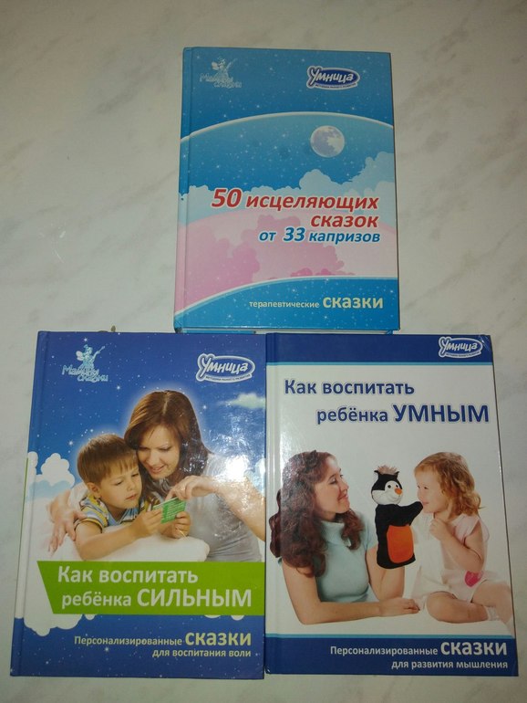 Книги «Как воспитать ребенка умным» и «Как воспитать ребенка сильным» персонализированные. Т.е. главный герой сказки - сам ребенок. Я когда впервые начала читать дочке сказку про девочку Славу, глаза у моей малышки горели так ярко, улыбалась до ушей просто! Классно! В книге о воспитании силы прорабатываются такие черты характера, как вера в себя, смелость, трудолюбие, настойчивость, обязательность, оптимизм, целеустремленность. В книге «как воспитать ребенка умным» фокус на качествах: любознательность, наблюдательность, память, логика, беглость, оригинальность дальновидность. Все сказки очень интересные, сама читаю с большим удовольствием! Очень хочу собрать всю серию!