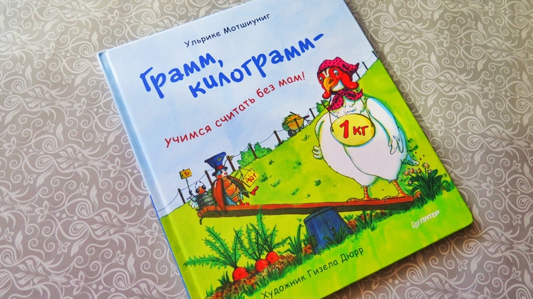 Эта книга про граммы и килограммы... Хотя нет же! Она про маленькую муху, которая очень хотела попрыгать на батуте, но не могла, потому как была очень легкой и вешала всего 1 грамм. Но она не растерялась и стала звать помощников: то 10-ти граммового жука, то 100 граммового воробушка, то курицу, которая вешала целый 1 килограмм!