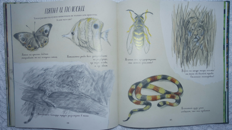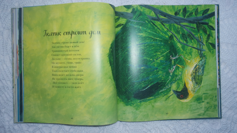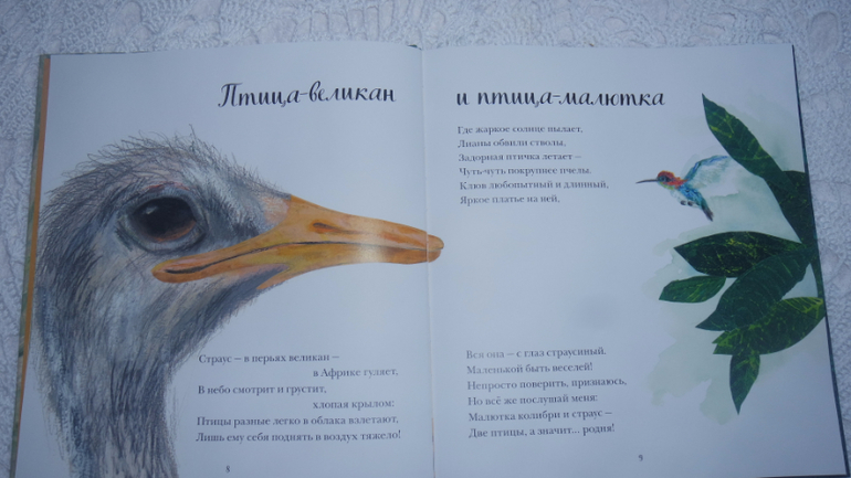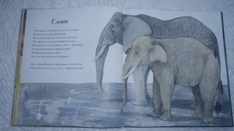 Энциклопедические данные написаны не сухим , скучным текстом, а забавными стихами Никола Дэвиса. Автор восхищается разными животными, подмечает их особенности и рассказывает детям. Стихи очень живые, эмоциональные. Мне очень понравились веселые, простые и по-детски преувеличенные сравнения автора.