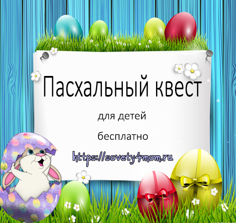 Виктория в Развивающие занятия с детьми 8 лет Квест на пасху для детей Девочки, всех поздравляю с наступающим светлым праздником пасхи. Я подготовила для своих малышей пасхальный квест. Спешу с вами поделиться. Кому интересно, ныряйте под кат Квест можно скачать бесплатно, по этому адресу https://sovety4mom.ru/kvest-na-pashu-dlja-detej-ot-pashalnogo-krolika/ Посмотрите еще 20 записей на эту тему Отменить Ответить Оригинальная покраска яиц к Пасхе! Ресторан Ням и его сотрудники - 2 Чаты Беременных Выберите чат: Январята-2026 Февралята-2026 Мартята-2026 Апрелята-2026 Майчата-2026 Июнята-2026 Июлята-2026 Августята-2026