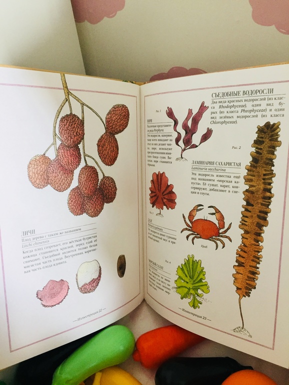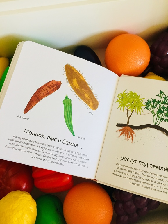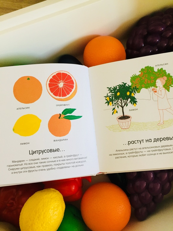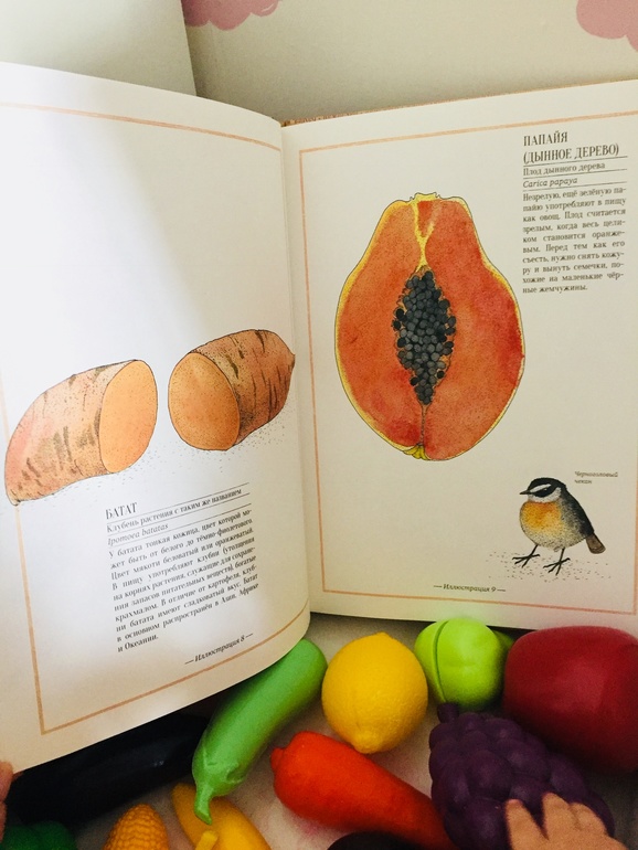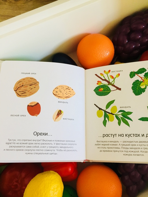И последнюю книгу, купила вчера. Тк часто стали появляться вопросы, где растёт ? Мы играем в игру грядка или дерево, и эта книжечка нам в помощь. Может кто-то знает энциклопедиею про еду такого характера? Чтоб было про производства, как получают, из чего делают, чтоб рассказали, что масло из семечек, хлеб из муки, кетчуп из томатов, это я приблизительно )))