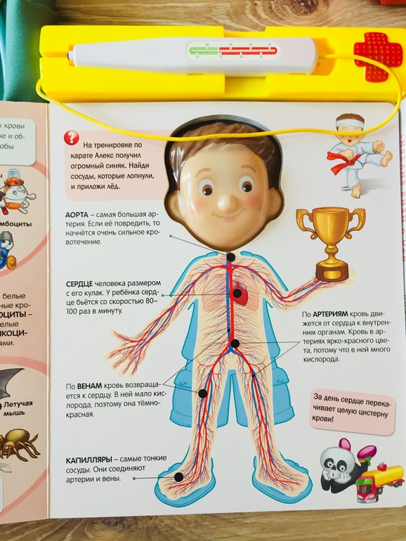 Вторая книга, от мной обожаемого Азбукварика. Всегда готова петь ему оды))) Интерактивная книга. Читаешь вопрос, отвечаешь при помощи ручки, лицо человека горит зелёным или красным,в зависимости от ответа! Купила давно, но Ульяна оценила её не сразу, зато сейчас достаёт каждый день.