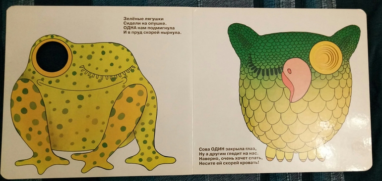 Считай до десяти от издательства Росмэна, старенькая уже книжечка, но дети любят дырочки в книжках)