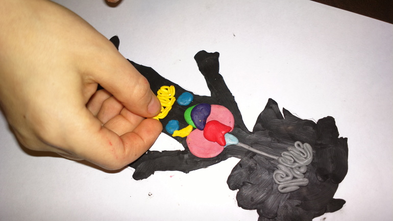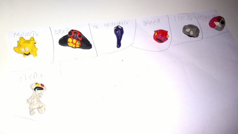 Вечером читаем книги, обсуждаем, а утром сынок по своему желанию вылепил эмоции.