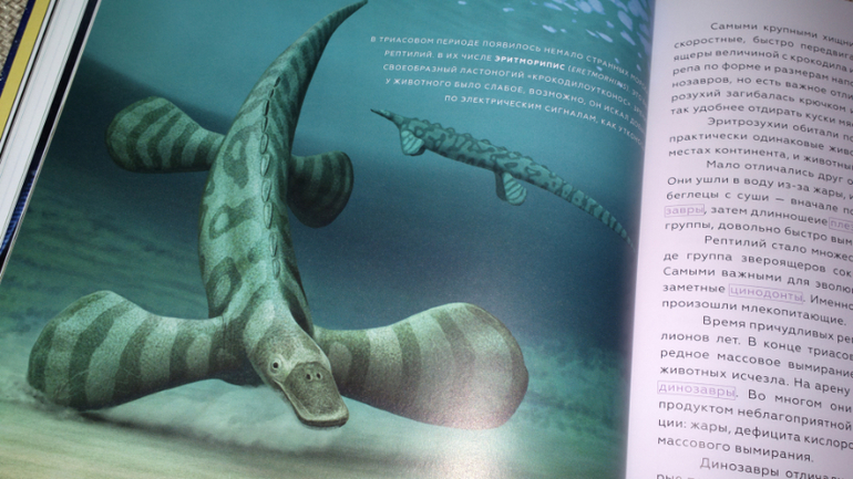 Так, страница за страницей мы путешествуем по эпохам жизни нашей планеты, знакомимся с её обитателями, узнаем особенности развития Земли.