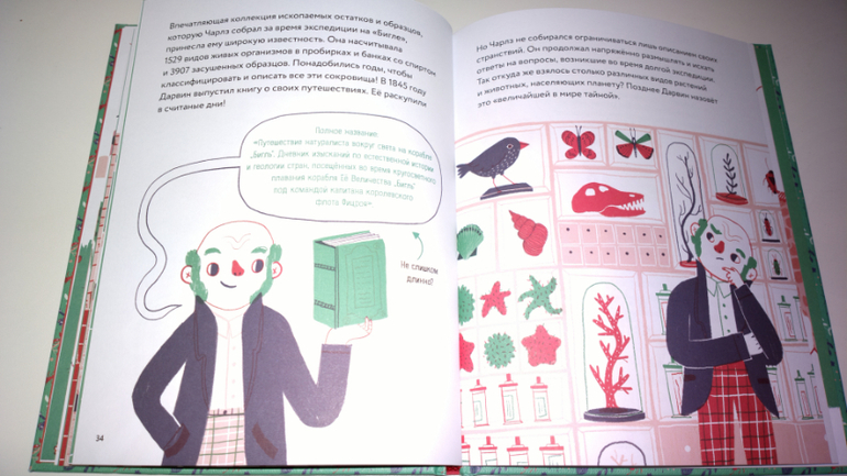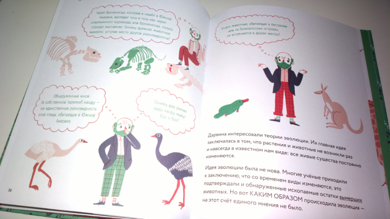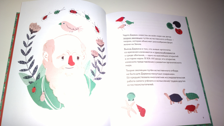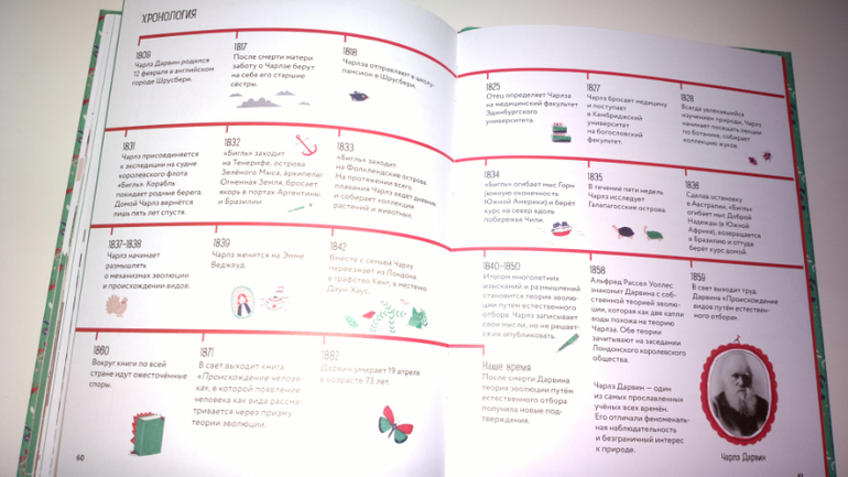 Итак, первый разворот книги знакомит нас с Чарлзом Дарвином.