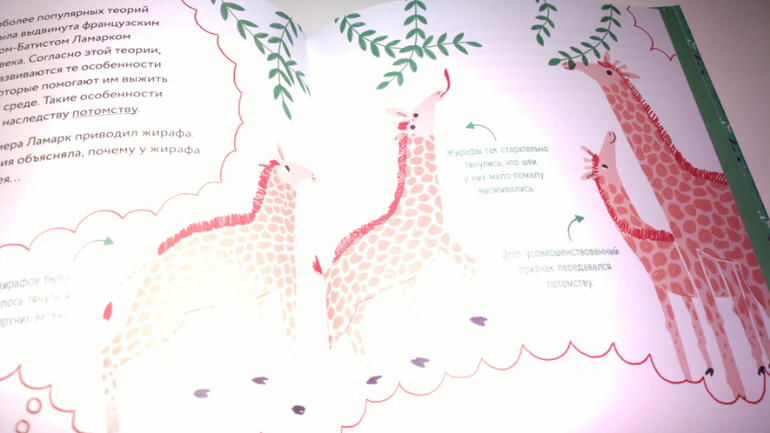Книга рассчитана на читателей от 8 лет. Каково же было моё удивление, когда я осознала, что автору удалось в доступной для ребёнка форме рассказать такую сложную тему. Помните, мы же проходили теорию эволюции в старших классах. Заходите почитать о книге и полистать её вместе со мной.