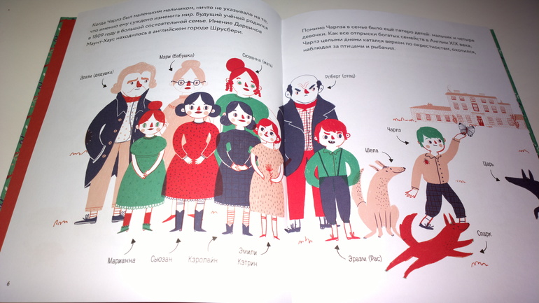 На втором развороте автор знакомит нас с семьей Дарвинов.