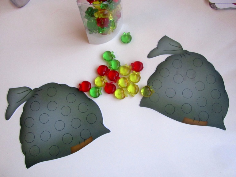 Хочу напомнить Вам, дорогие участники сообщества, о самодельной игре на счет "Яблочки". С удивительными иллюстрациями героев Сутеева "Мешок Яблок".
