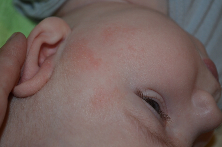 Здравствуйте. Ребенку 3,5 мес. До прививки пентаксим на лице образовались красные пятнышки, как корочки, после прививки - стало больше и по всему телу. У педиатра перед прививкой были, она сказала следить за употребляемыми продуктами и направила на прививку. Высыпания были незначительные, я не придала им большое значения, думала от конфет. Но конфет уже не ем давно, а высыпаний стало больше и не знаю связывать это с прививкой или нет. И еще, стул у малыша стал редким и зеленым. Может, это как -то связано? Ведь все что внутри - отражается снаружи? Анализ на дисбак мы делали месяц назад, когда еще никаких высыпаний не было, пропили линекс (педиатр сказала), стул был нормальный. А вот где то недели 2 высыпания не уходят. Мы на СВ, смесь не меняла с роддома (нан 1), и кроме конфет ничего нового не ела, конфеты давно забыты. К дерматологу только 23-го записаны, на раньше талончиков не было. Поведение малыша - обычное, только почесать хочет. Фото под катом.