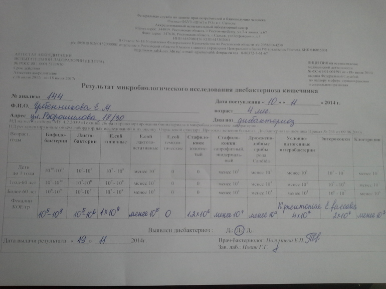 Не делали на чувствительность, наверно у нас в городе такого не делают.Были у педиатра, прописали лечение: стаф.б/фаг5,0×2раза в рот10,0×1раз в клизме5 дней, потом неделю перерыв, потом опять 5 дней лечениеЗатем линекс 1к×3раза 4 недели или промадофиус 1чл×1раз 4 неделиКак я должна 5 мес ребенку сделать клизму? Неужеле клизма так необходима?Как Вам это назначение?Татьяна Васильевна это очень серьезно? Как это могло у нас появиться? Может ли это быть причиной нашей проблемы с едой, точнее НЕ едой, и соотв-но малой прибавкой веса?Спасибо Вам огромное!
