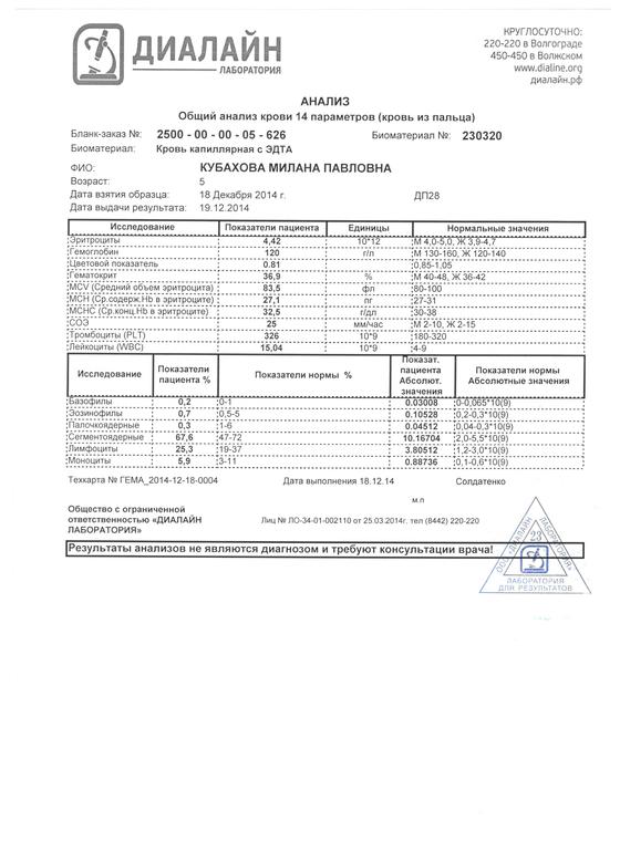 Здравствуйте. У дочери был катаральный отит среднего уха,аденоидит.Лечилась в стационаре с 13 по 17 ноября. Кололи цифтриоксон,потом дома пили клацид.соэ 50,лейкоциты 37.Температура максимум поднималась 37,6. Через месяц пересдали оак
