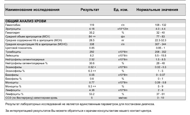Евгения в Педиатр 10 лет Помогите расшифровать добрый день! Помогите, пожалуйста, расшифровать анализ крови. Дочке два года, вес 12 кг, рост 83см, атопический дерматит, пищевая аллергия, повышенный аппетит, газы, иногда желтеет кожа лица, тревожная и раздражительная. Спит хорошо Посмотрите еще 20 записей на эту тему Отменить Ответить Евгения Спасибо ) 11.07.2015 Ответить Татьяна Прокофьева Здравствуйте, Евгения!Увеличение эозинофилов характерно для аллергиков. Других значимых изменений в анализе крови нет. 10.07.2015 Ответить Аллергический ринит У ребенка дикая аллергия, чем кормить? Продолжение Чаты Беременных Выберите чат: Январята-2026 Февралята-2026 Мартята-2026 Апрелята-2026 Майчата-2026 Июнята-2026 Июлята-2026 Августята-2026