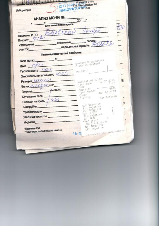 2) Очень сильный запах мочи, которая если какое-то время не выливать из горшка образует осадок, который плотно прилипает к самому горшку. В приложении отправляю Вам скан, результатов анализа мочи, на тот момент, когда эта проблема уже была и результат анализа крови;