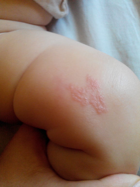 Красные болдыристые, пятна на теле у 7ми месячного малыша.