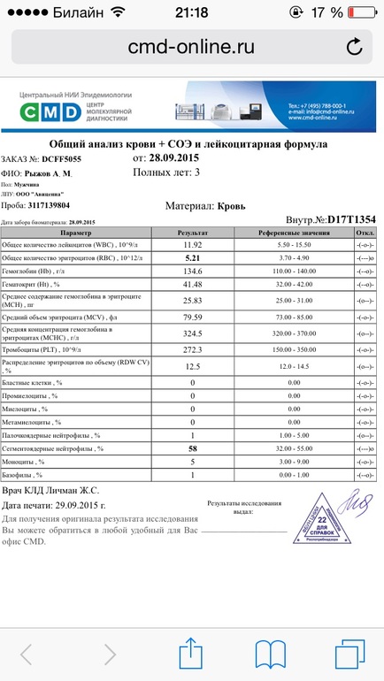 Общий анализ крови у ребёнка нормальный. Никаких признаков цитомегаловируса и вируса Эпштейн-Барра нет.