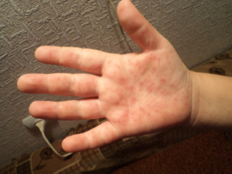Здравствуйте. У сына появилась сыпь, сначала несколько точек на ладошках, к вечеру ее стало много на ладошках и ступнях, вся эта "красота" жутко чешется. На другой день появилось несколько прыщиков на лице. В районной больнице дерматолога нет, а педиатр сказал, что это вирус (на анализы не направил) и выписал Арбидол. А я что-то сомневаюсь, он и от соплей-то не помогает, и сейчас уже третий день пьем, а лучше не становится. Что это может быть и не ошибся ли наш доктор? Заранее спасибо.