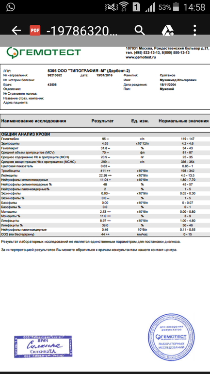ы сдали анализ!Не могли бы вы нам расшифровать его?