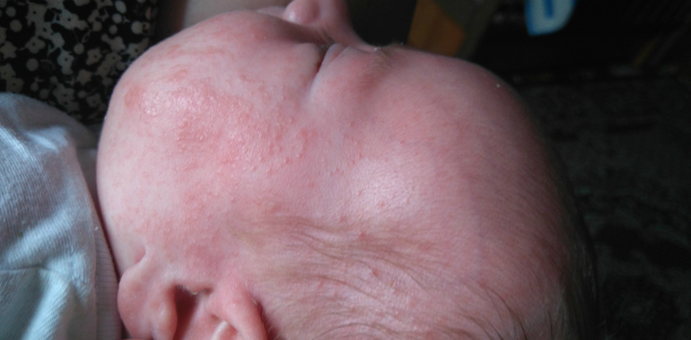 Здравствуйте!Нам 1.5 месяца.Появилась вот такая аллергия на личике и шее.Не можем разобраться на что она.Пользуемся всем чем раньше.Уже исключили все крема и шампуни,мыло для стирки,даже влажные салфетки .Смесь нестажен мы кушали с самого рождения,грудью я не кормлю.Духов никаких не использую.Ничего понять не можем.Когда он кряхтит и тужится становится еще хуже,все краснеет и в пятнах.1.5 недели назад лежали в больнице с носиком и горлышком проблемы были .Там нам антибиотики ставили и капли капали (коричневые такие,название не помню)Вот на что то из этого у нас там сильная аллергия пошла по всему телу ,сплошная экзема была.Попили супрастин,и перестали капать и ставить уколы все прошло.Но как из больницы вернулись вот это вылезло на личике,думали по началу что потничка,щечки шершавые стали и белая шкурка отшелушивается.Когда супрастин даю,краснота спадает,и то не надолго ,а сыть не проходит.Думали на смесь уже,вчера сменили ,но как то улучшений никаких нет,все по прежнему.Помогите пожалуйста,я уже не знаю в чем дело и на что думать.