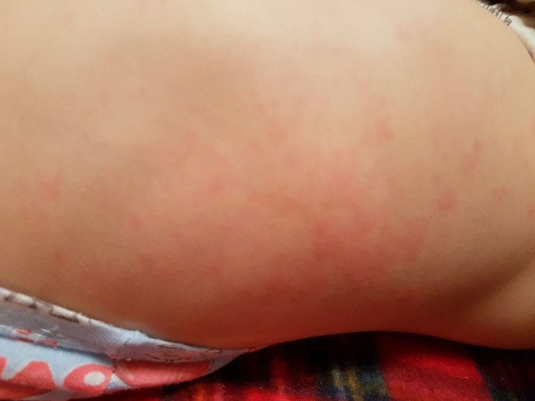 Здравствуйте! Такая проблема. Малышу 1.10мес.два дня назад на животике начали появляться пятнышко. Кушает вроде все. Но на эти продукты вряд ли будет Аллергия. Единственное приехала тётя. И подарила ему молочный шоколад ( несквик) и грибочки-печенье все в шоколаде. Но я дала ему немного совсем. Фото прилагается. Подскажите Аллергия ли это или пятница. Бегает,прыгает. Может вспотел, поэтому? Или что то ещё. Но вот раньше до шоколада ничего не было.